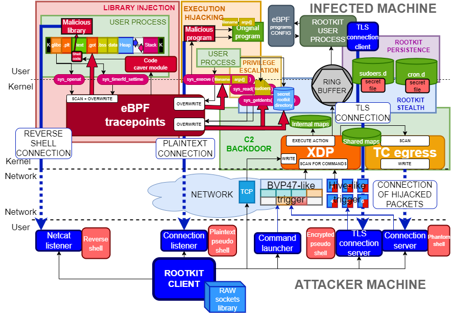 This rootkit was created for my Bachelor's Thesis at UC3M. More details about its design are provided in the [thesis document](https://github.com/h3xduck/TripleCross/blob/master/docs/ebpf_offensive_rootkit_tfg.pdf).